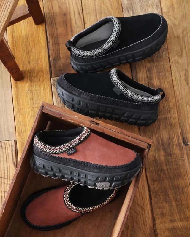 各单位注意,UGG 上山了……UGG 三个字,可以说是成了秋冬好鞋的“金招牌”,也是大家对于 UGG 防风保暖性能的一个认可。这次,UGG 给我们带来的秋冬半拖答案,一对具有超厚底的皮革半拖。它的材质满满秋冬质感,鞋底凸起也做了细节处理增强抓地力,鞋身上的一圈针织线装饰给人一股子印第安风格,用来搭配牛仔裤应该很帅~