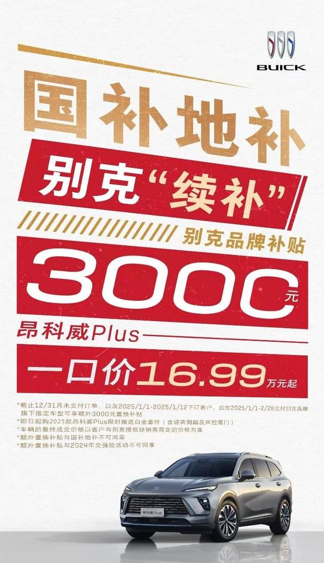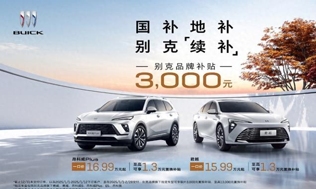 新年在即,别克又送新福利。针对新一年汽车置换国补地补退坡,别克为消费者“续补”:对于已经购买别克君越、君威、昂科威Plus、昂科威S、别克E5、昂科旗车型,但未在12月内交付的用户,以及在2025年1月12日(含12日)之前下订的新用户,别克品牌将在车型原有的置换政策之上,额外提供3,000元置换补贴。此举将打消用户因车源供不应求、提车周期较长而错过补贴窗口,或因年底前来不及购车而无法享受政府置换补贴的后顾之忧,体现别克对用户的满满诚意。