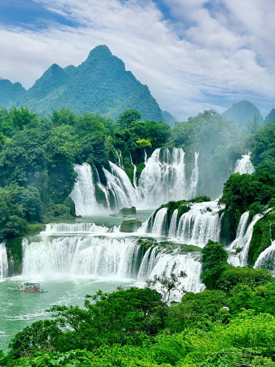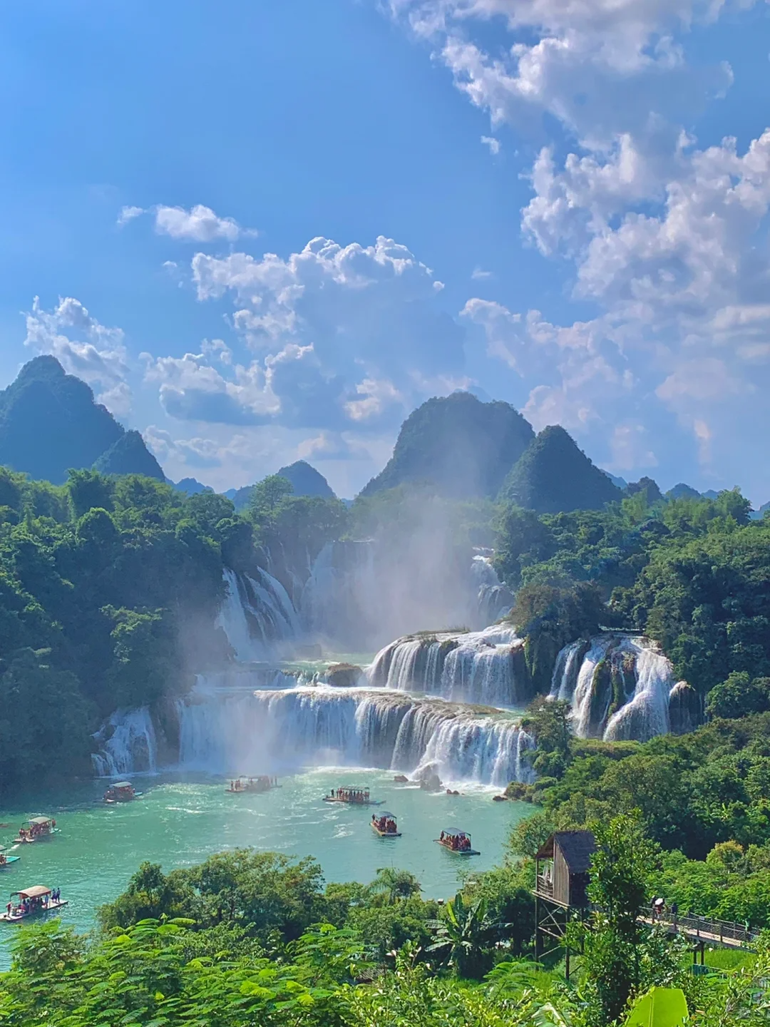 1.德天跨国瀑布推荐5-10月丰水期去,避开节假日高峰,💰110元,推荐坐竹排和登山,可以多角度欣赏跨国瀑布。作为中国第四大瀑布,德天瀑布横跨中越边境,气势磅礴。