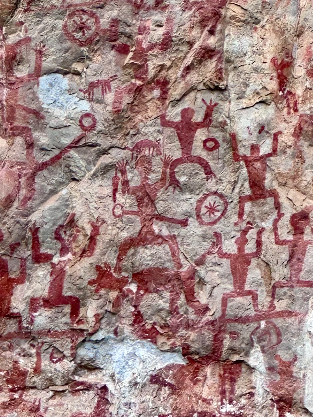 乘船游览左江,仰望峭壁上的神秘图案,仿佛穿越回远古时代。岩画中的人物、动物和图腾符号,诉说着古老的传说和文化。“花江岩画,2500年前的一声叹息”。