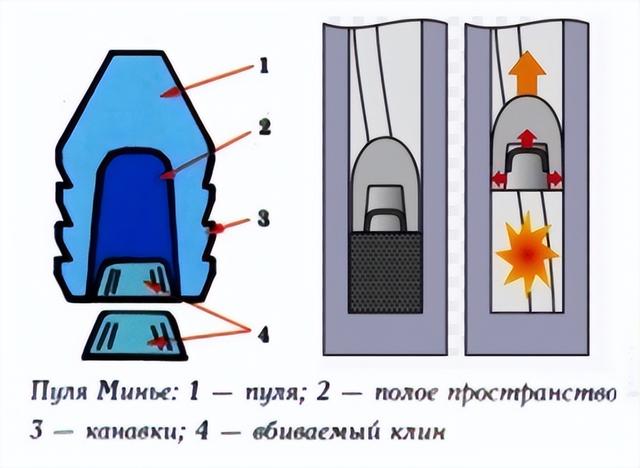 随着点火系统的改进,子弹也得到了改良。子弹不再是球形,而是采用了锥形,这样能减少空气阻力,提高飞行速度。同时,子弹与枪管壁的贴合度也是一个重要问题,因为射击时火药气体的泄漏会降低子弹所受的压力,从而减少射程。为了应对这一问题,枪械匠开始实验扩展型子弹——这些子弹的尾部是空心的,内部嵌入了铁楔子。射击时,火药气体的压力将楔子打入子弹内部,使子弹膨胀贴合枪管。这项发明由法国军官亨利·古斯塔夫·德尔文于1826年发明,1847年由他的同事查尔斯·克劳德·艾蒂安·米涅进一步改进。米涅在子弹侧面刻上凹槽,使子弹与枪管内表面更紧密贴合。