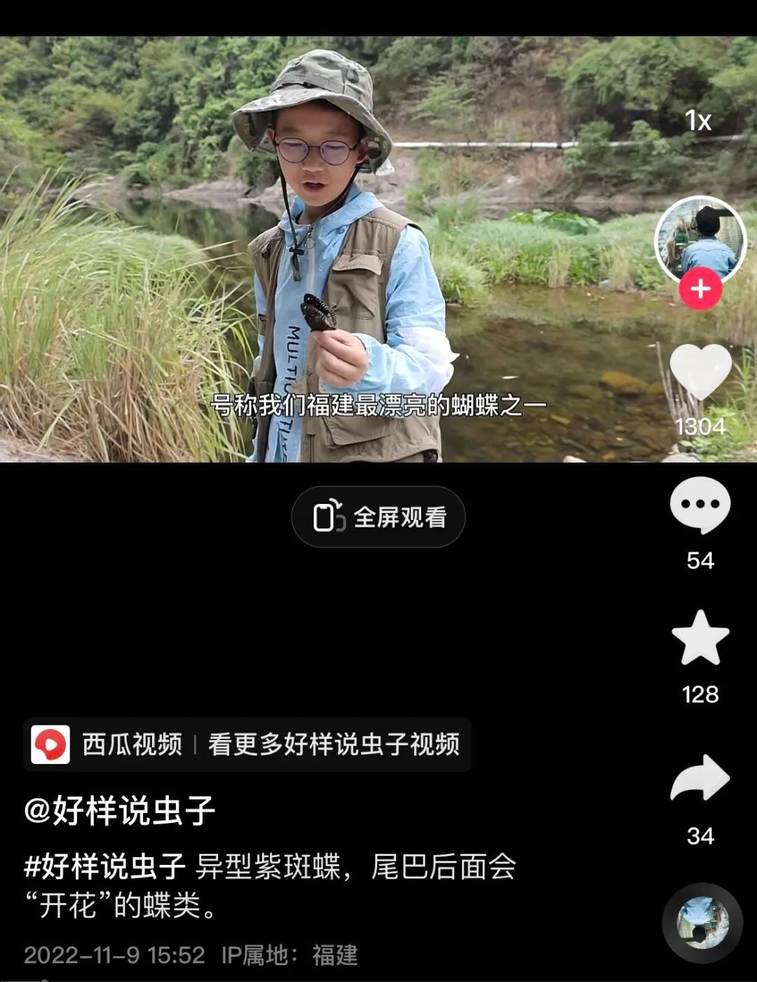在抖音上,有一位拥有68万粉丝的博主@好样说虫子,他每天向网友科普各类昆虫,解说虫子名字的由来以及身体构造和生活习性。由于刻板印象,也许人们看到这个描述,会以为这个博主会是一位知识渊博的中年人或者是老者。实际恰恰相反,这位博主只有12岁。