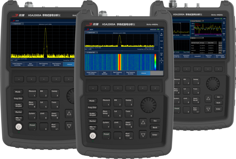 卫星地面站外场频谱监测的利器:手持式信号分析仪玖锦科技手持式信号分析仪HSA2000A,频率范围:9 kHz~44 GHz,相位噪声:≤-103 dBc/Hz(载波:1 GHz,偏移:10 kHz ),是一款适用于卫星地面站测试的多功能频谱仪。