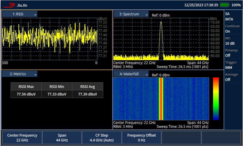 干扰信号分析(IFA):具备干扰分析功能,可提供三种测量模式三种不同的测量模式,频谱测量,瀑布图测量和接收信号强度指示(RSSI);