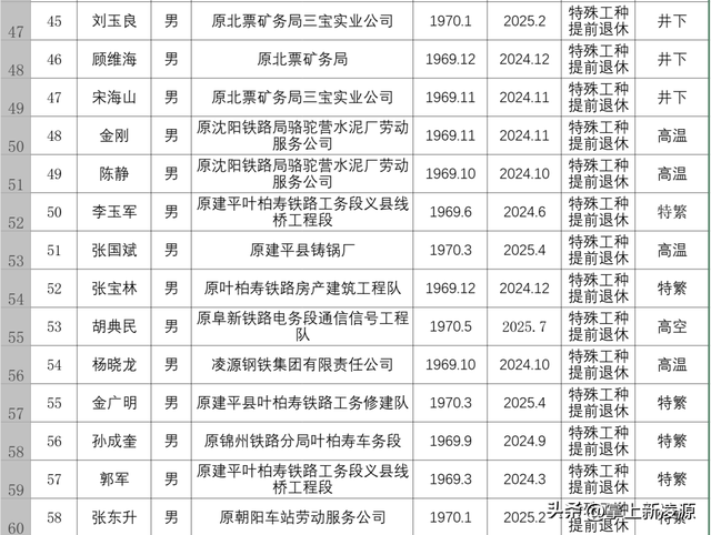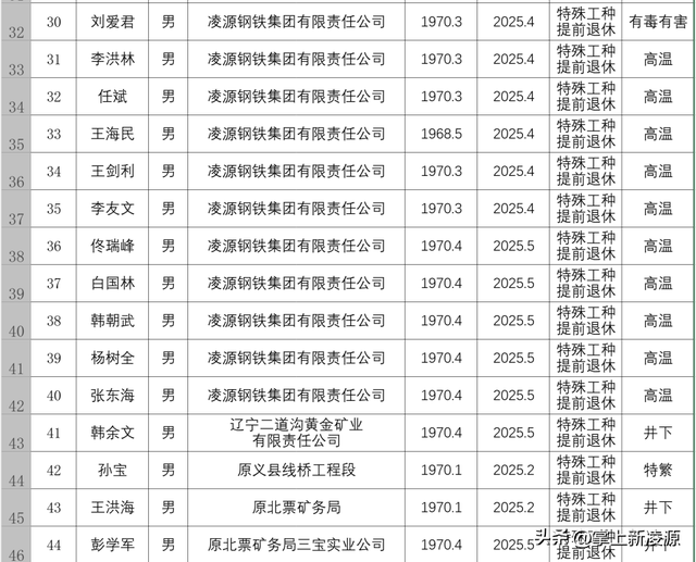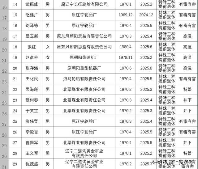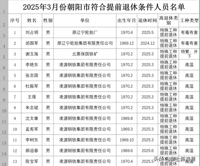 根据《人力资源社会保障部关于进一步加强企业特殊工种提前退休管理工作的通知》(人社部发〔2018〕73号)和《关于优化和规范企业职工基本养老保险退休审核等工作的通知》(辽人社函〔2020〕291号)文件要求,现将3月份朝阳市符合条件的提前退休人员进行公示,具体名单详见附件。