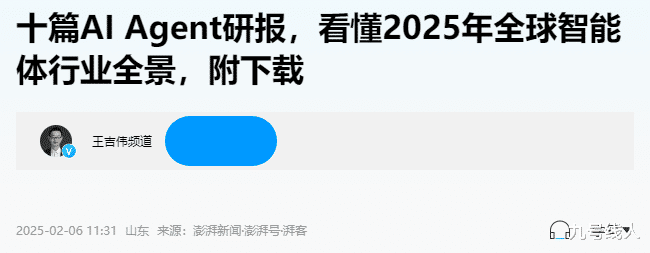 澎湃新闻-《十篇AI Agent研报,看懂2025年全球智能体行业全景》-王吉伟-2025-02-06