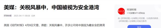 美媒:关税风暴中,中国被视为安全港湾-环球时报