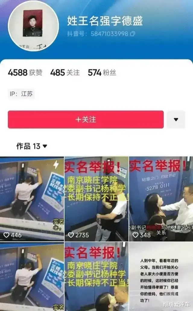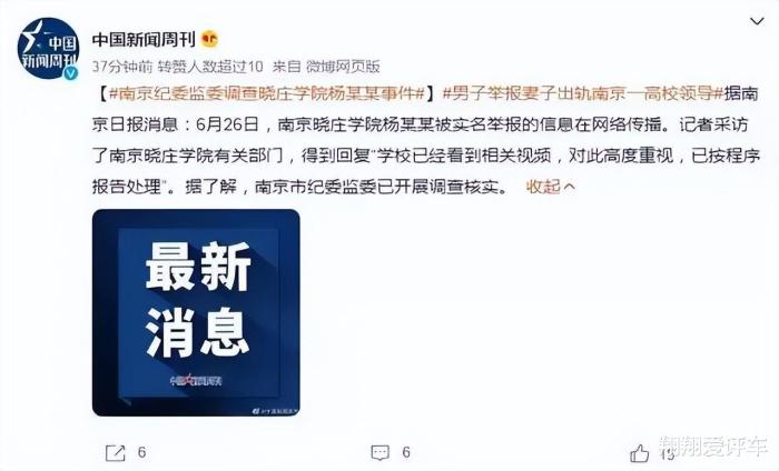 6月26日,有网友在某短视频平台上发布了多段视频,实名举报江苏南京晓庄学院党委副书记杨某学与自己的妻子长期保持不正当男女关系。