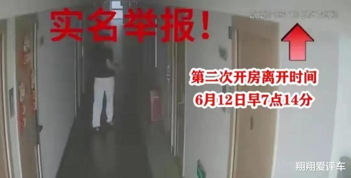 6月13日凌晨0:32,两人在电梯里搂搂抱抱,杨某学还将女子压在电梯一角,状极亲昵。接着,两人一起进了酒店房间。直到上午7:14分,女子一个人离开了房间,而杨某学没有离开。从画面上可以看出,女子走出酒店门时一个小趔趄,双腿竟有点虚浮。
