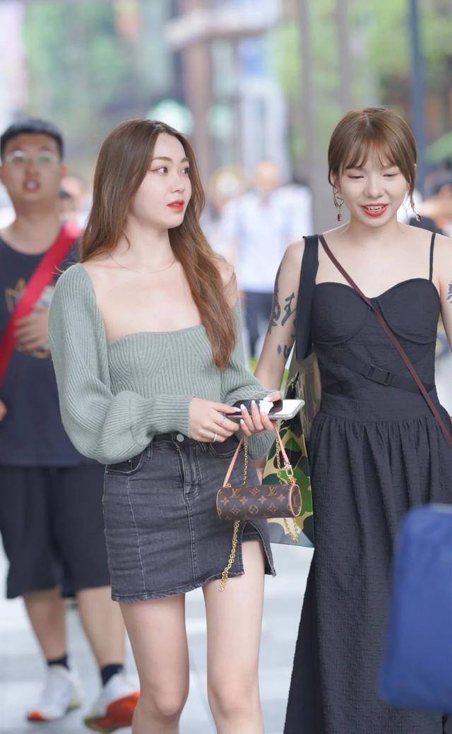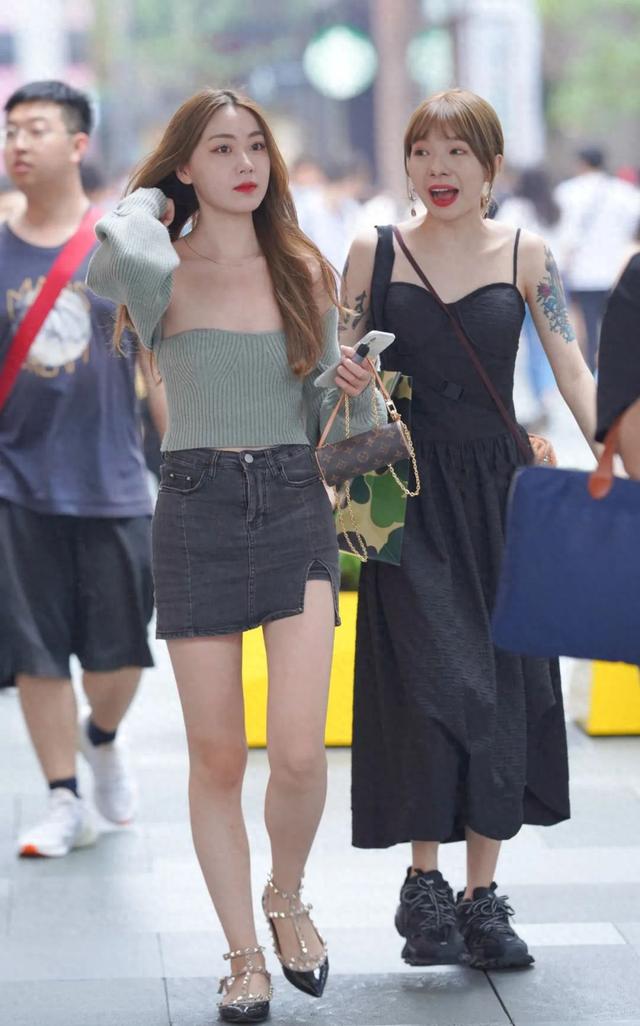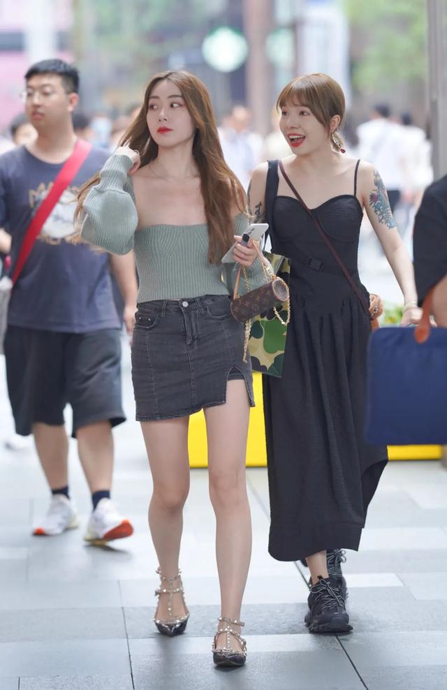 穿抹胸衣搭配牛仔短裙秀好身材的时尚小姐姐
