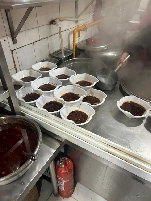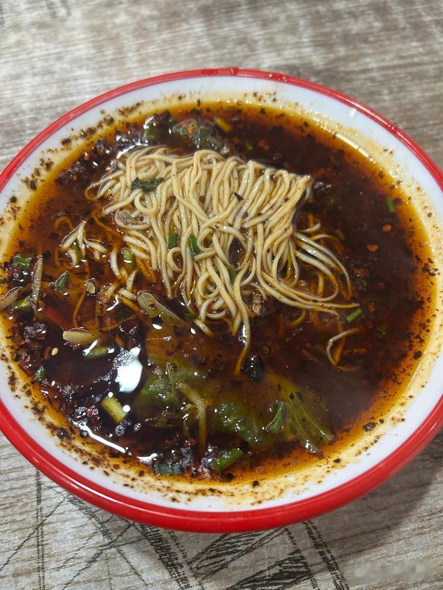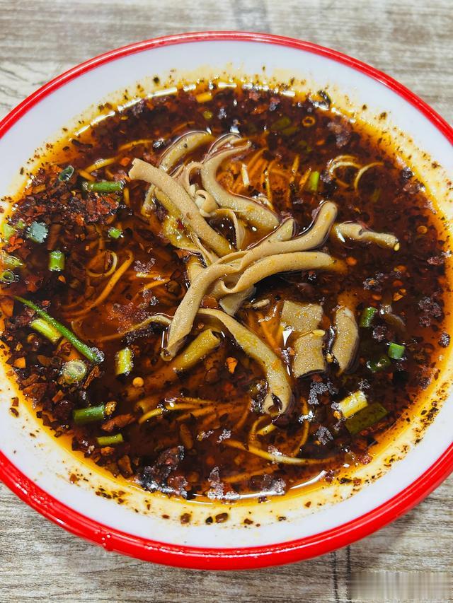 绝味鸭肠面,位于智强牛肉面附近,不是网红店,以一锅红汤鸭肠出圈,鸭肠干净无异味,不是现炒,颇具脆感。辣椒是老板的特色,不同于蔡氏牛肉面的糊辣,香辣鲜香,油润可口。姜丝牛肉保留了牛肉本身的肌理,偶尔能咀嚼到姜丝的脆嫩。在两种浇头的制作上,没有明显的短板,只是两碗面条的味道都是一样的,和牛肉面一样,浇头只是浇头而已。