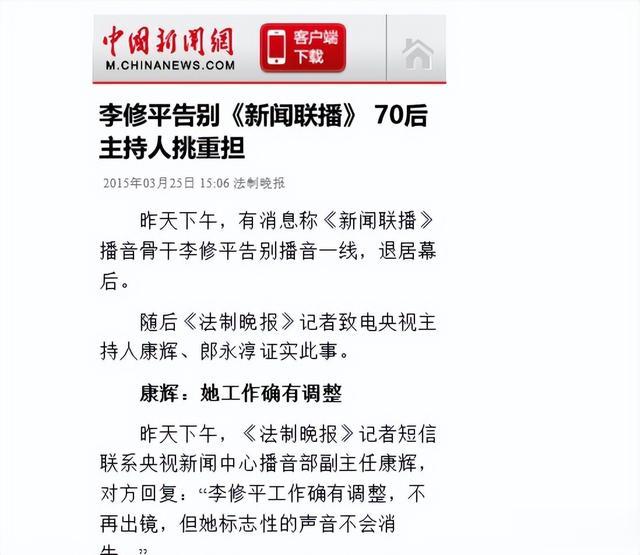 她就是在《新闻联播》中多年的主持人李修平。