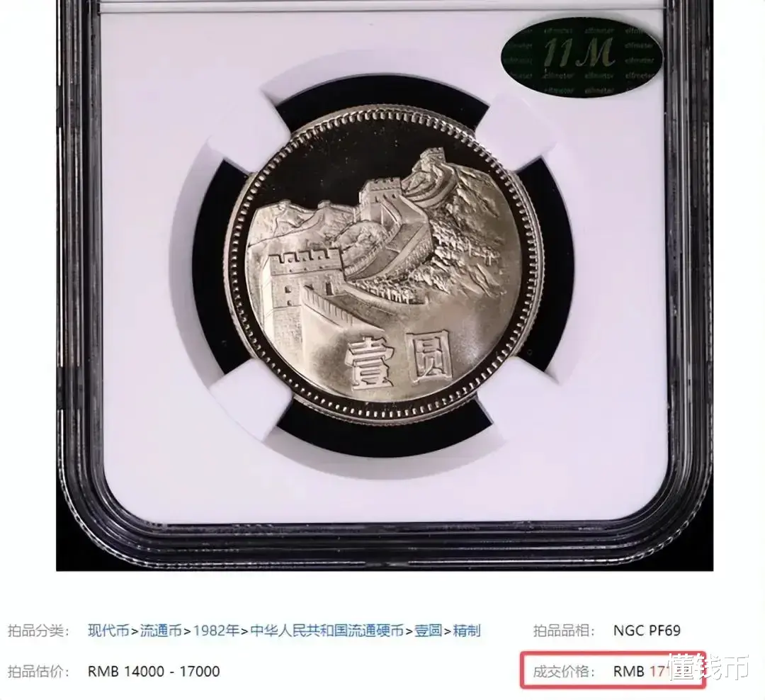 例如,一枚1982年发行的精致币,即便没有达到最高评分,其拍卖价格也能达到17132元。