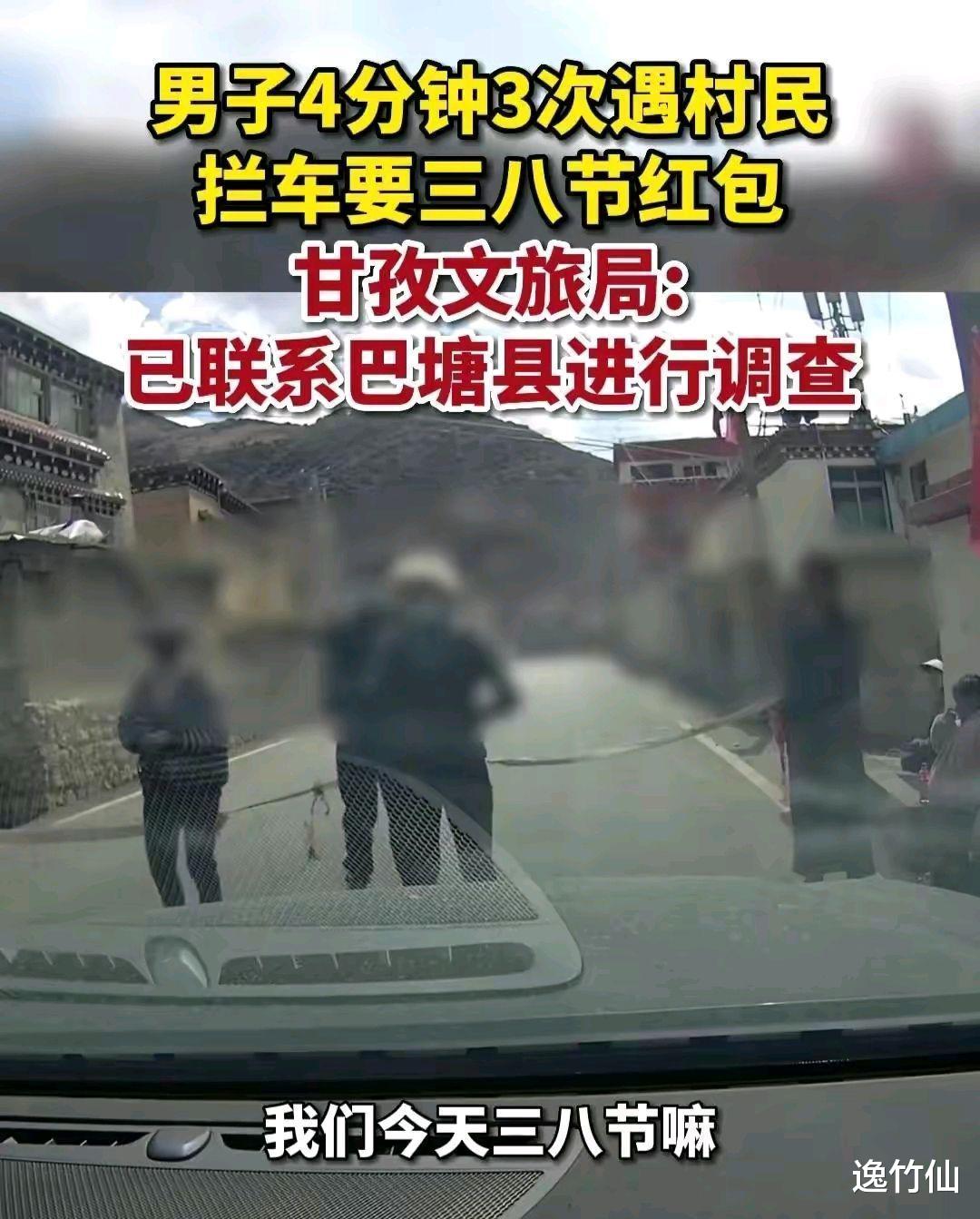 3月8日,又有游客在网络上发布视频,称去四川甘孜旅游,他开车路过甘孜州巴塘县某村庄的时候,4分钟内3次遇女村民拦路要三八妇女节红包。“三八国际妇女劳动节”是纪念女性独立,倡导男女平等的节日,怎么成了妇女拦路打劫的借口了?这锅“三八妇女节”不背!