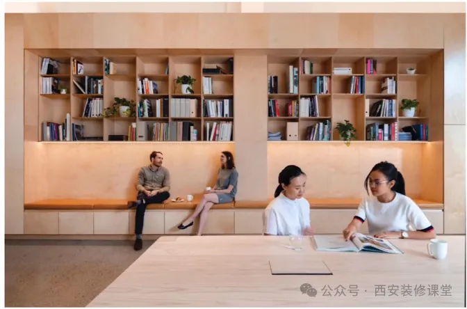 也可以独立卡座,让书架与卡座中间刚好满足沙发的功能,空间弱化压抑感,更方便阅读,适合书籍少的家庭,也适合办公空间的休闲角落打造