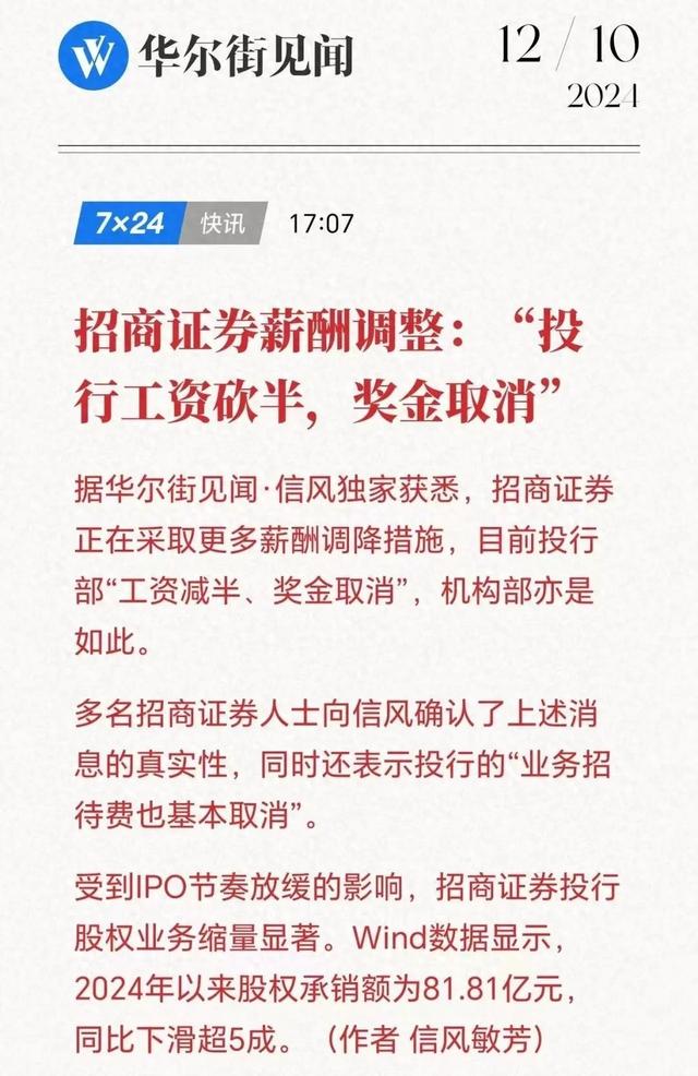 图上的瓜这两天很多圈内朋友给我发,业内某大券商被曝光,投行部 “工资减半、奖金取消”,业务招待费也基本取消,机构部一样没得逃