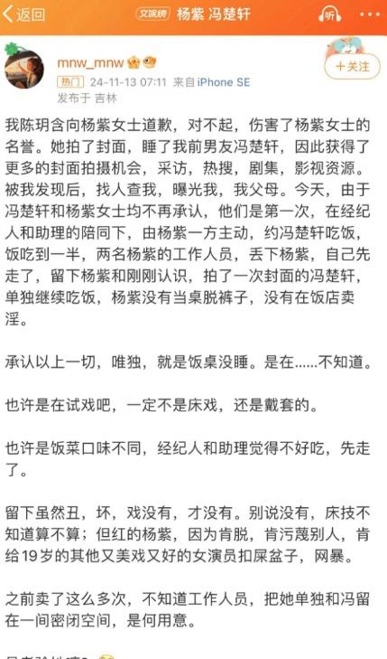她声称杨紫与某CEO存在不正当关系,用“陪睡换资源”等不堪入耳的字眼,肆意玷污着杨紫的声誉。