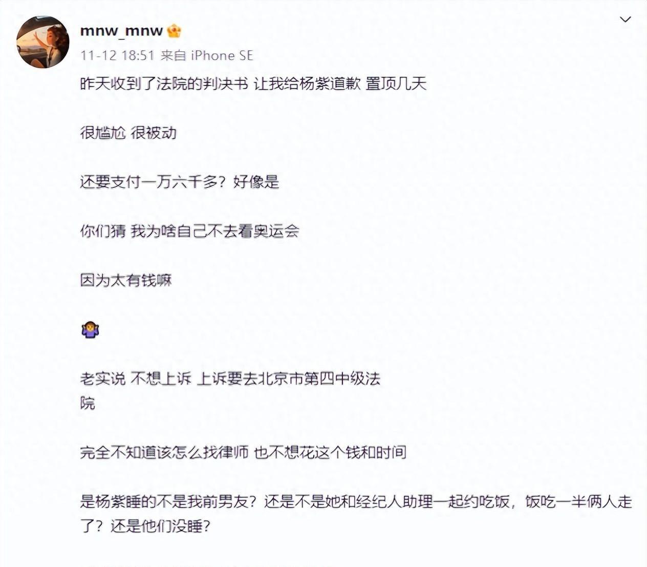 早在2020年,她就曾因散布关于杨紫的不实言论而被罚款10万元。