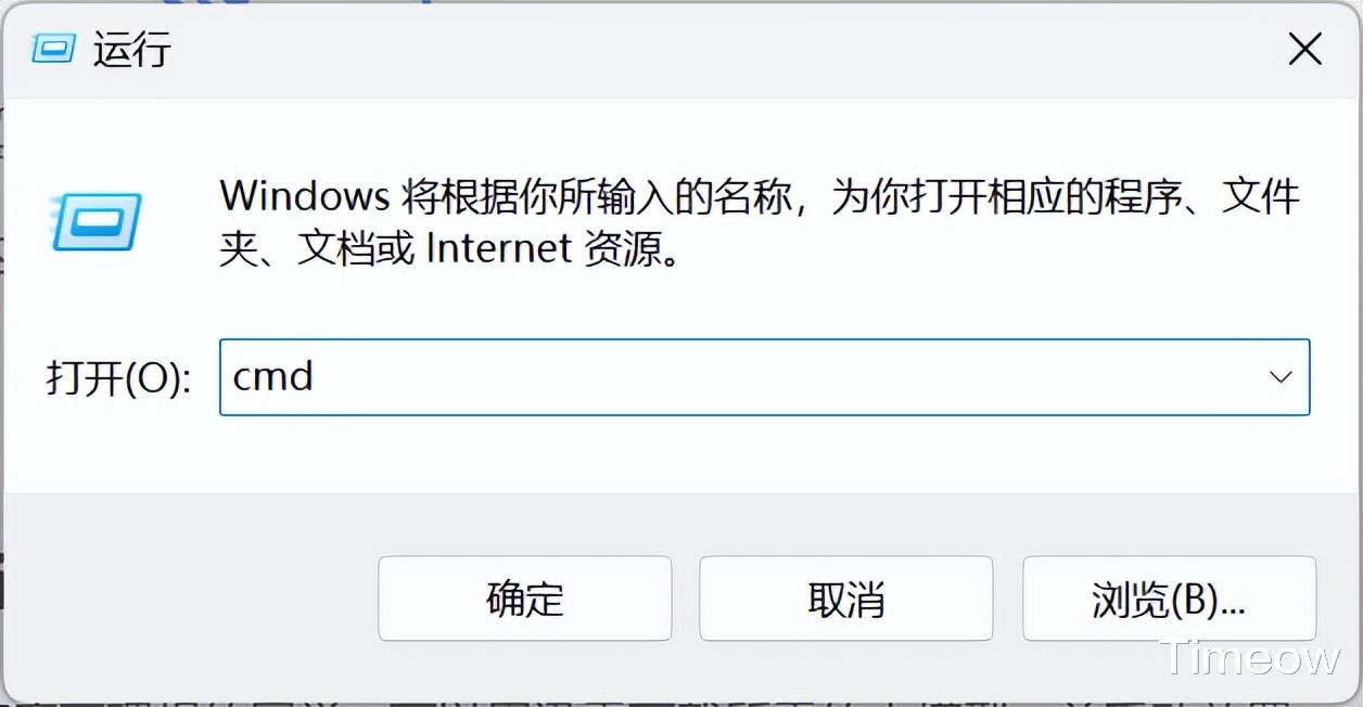 按windows徽标键+R,打开“运行”,输入cmd并确定。