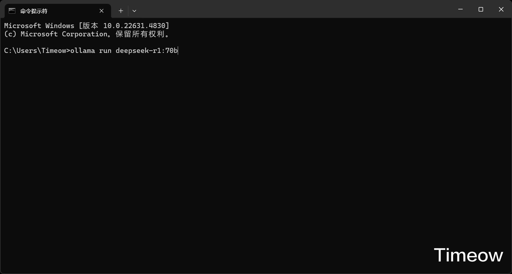 在命令提示符或终端里,Ctrl+V,将刚刚复制的代码ollama run deepseek-r1:70b粘贴到里面,随后按键盘的Enter/回车健。