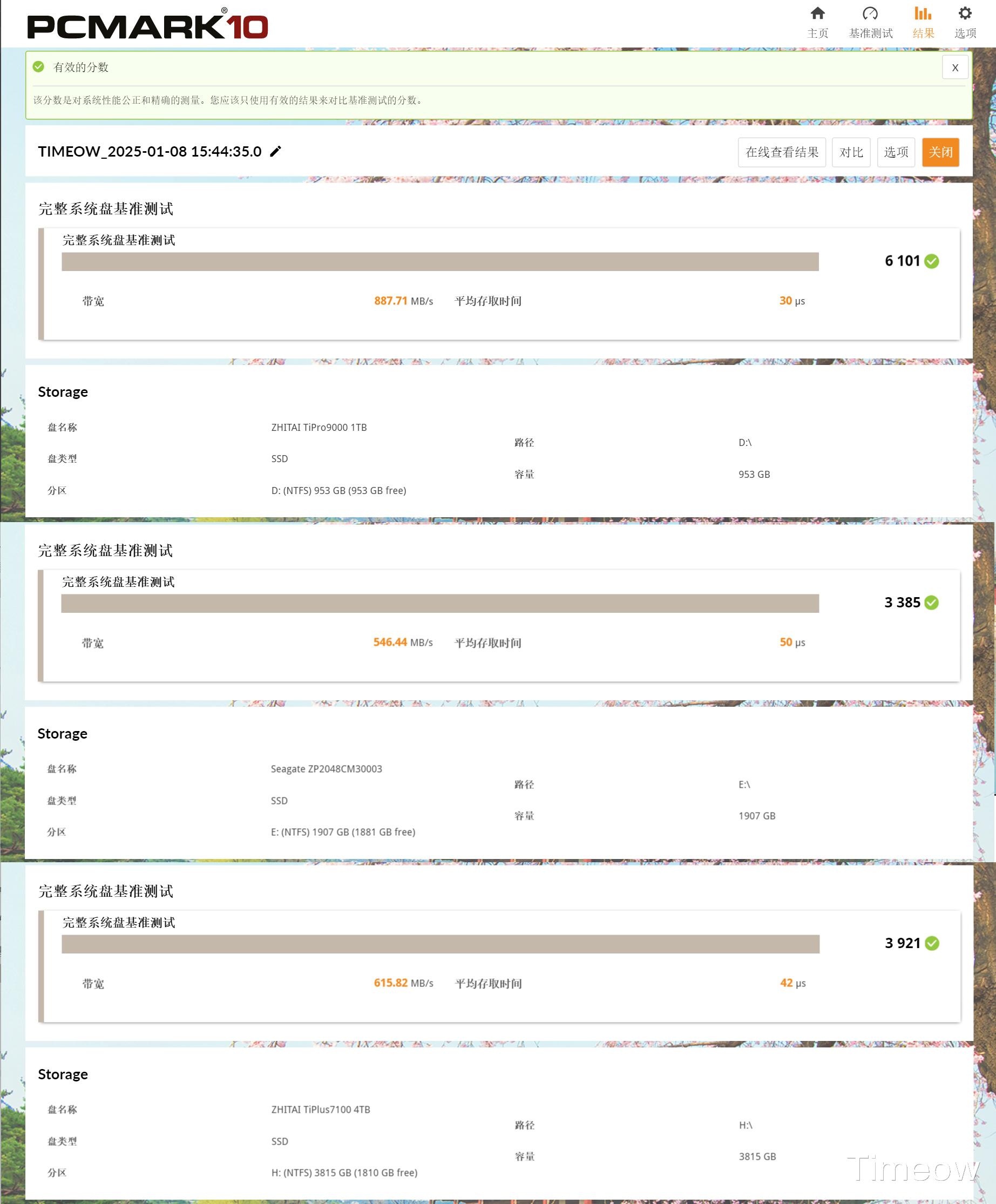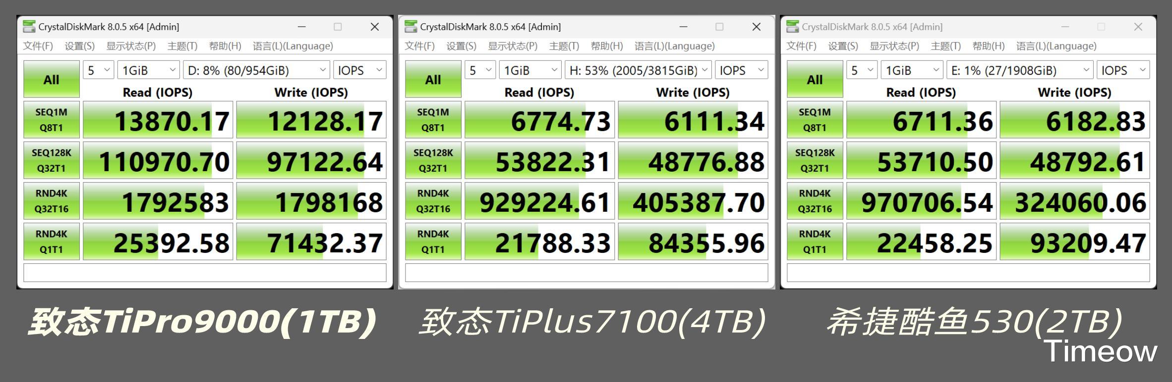 如果不支持5.0的话,高端PCIe4.0固态也同样可以畅快用,像上面的测试图显示,致态TiPlus7100性能也相当不错,可以作为首选。