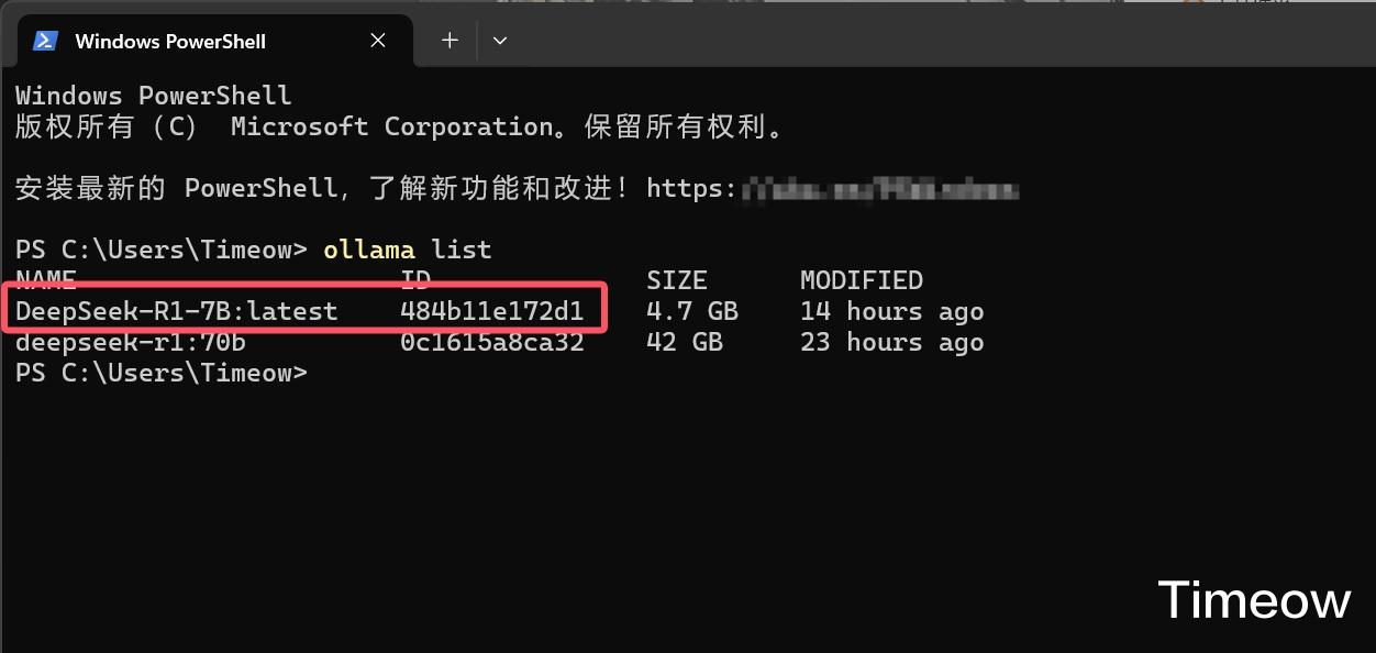(意思是用D:\deepseekmodel\Modelfile的路径找到模型文件,生成一个DeepSeek-R1-7B模型)