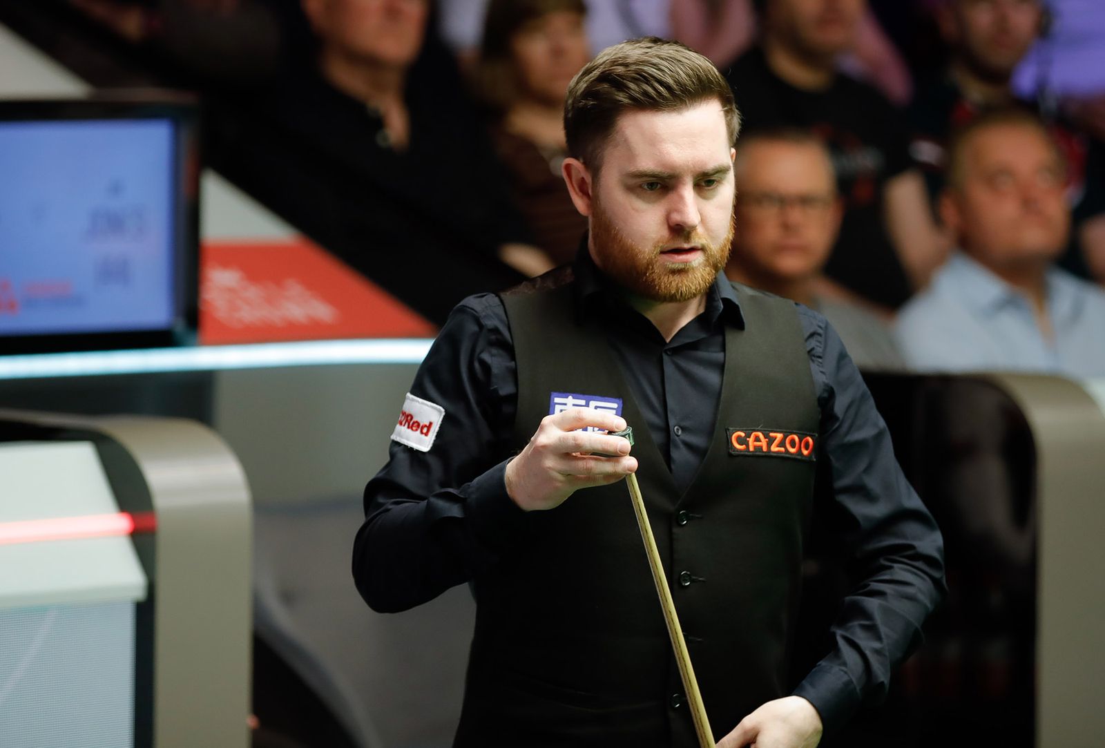 在本决赛他对阵便汉姆的第1局,斯图亚特·宾汉姆先以76-0的比分先拔头筹。第2局,斯图亚特·宾汉姆再下一城,以94-27的比分胜出。第3局,斯图亚特·宾汉姆再以78-36的比分获胜,宾汉姆取得3-0的梦幻开局。但随后第4局开始,大黑马杰克·琼斯开始发力,先后以55-52、67-20、69-35的比分连胜三局回敬宾汉姆,将比分改写成3-3。而在第7局,斯图亚特·宾汉姆以80-44的比分获胜,将比分改写成4-3重新取得领先。第8局,杰克·琼斯以72-15的比分获胜将比分追成4-4平。第一阶段斯图亚特·宾汉姆打出3杆50+,杰克·琼斯打出2杆50+,双方目前均没打出破百。他们第二阶段的比赛将在5月3号晚21:30进行。