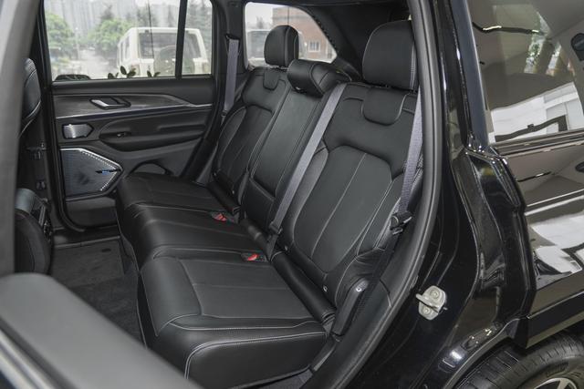 它的座椅采用了Nappa真皮的风格,座椅采用2+3的座椅布局。座椅拥有较厚的填充物,坐上去没有塌陷感,长时间乘坐也不会太累。前排的座椅支持电动调节的功能,还提供了腰部的调节的功能。前排和后排的座椅都支持加热的功能,前排座椅还多了通风的功能,提升了乘坐的舒适性。身高172cm的体验者坐在前排,头部拥有1拳多的空间,来到第二排,腿部的空间超过2拳,空间表现的宽松。车顶拥有全景天窗,拥有较大的采光面积,能得到非常开阔的视野,乘坐不压抑。它的后排座椅还支持4/6比例的放倒,放倒后能得到一个比较平整的空间,增加了储物空间,后备箱的开口比较大,方便放置或取出物品。