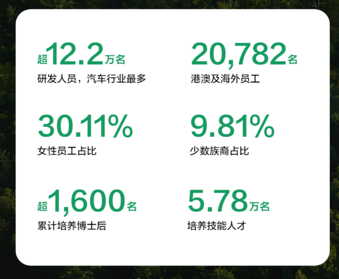 2024年比亚迪的社会责任实践更注重系统性影响,供应商付款周期缩短至127天(优于行业水平),优化产业链资金流动,推出覆盖1.2万人的18亿元0元持股计划,内部培养5.78万名技能人才,并斩获“亚洲最佳雇主奖”,30亿元教育基金聚焦新能源技术科普,推动行业人才储备。
