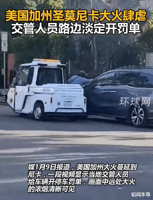 比如山火肆虐之下加州圣莫尼卡人人自危,可是美国的交管人员居然完全无视,依然淡定的对要逃亡的汽车贴罚单。