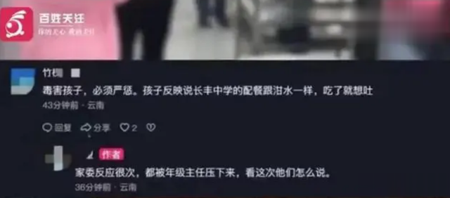还有家长表示,孩子在学校饭菜上出现了不一样的情绪问题,也出现了身体上的问题,只不过一直不相信是因为学校,还以为是孩子的口味刁钻。