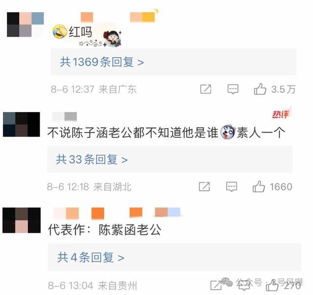 这时,正在气头上的网友不禁反问:他红吗?他代表作不就只是“陈紫函老公”吗?