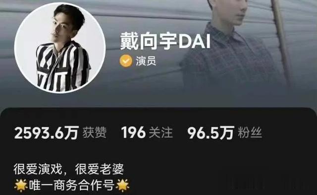 戴向宇在平台的个人简介也引来大众关注:“很爱演戏,很爱老婆。”