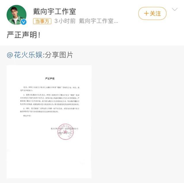 随后不久,戴向宇工作室发严正声明进行辟谣。