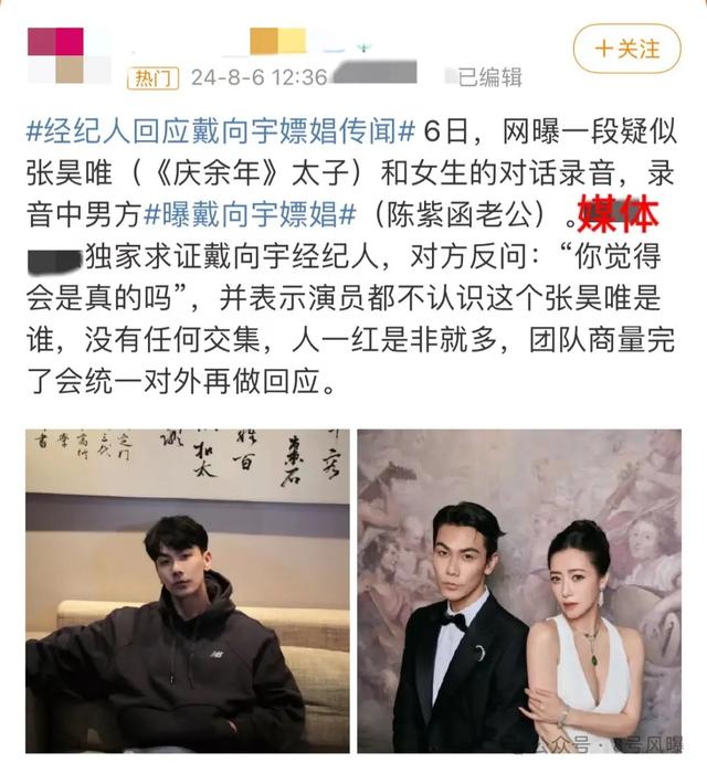 有媒体向戴向宇方求证,其经纪人对此只回应说:戴向宇和张昊唯没有任何交集,人一红是非就多。