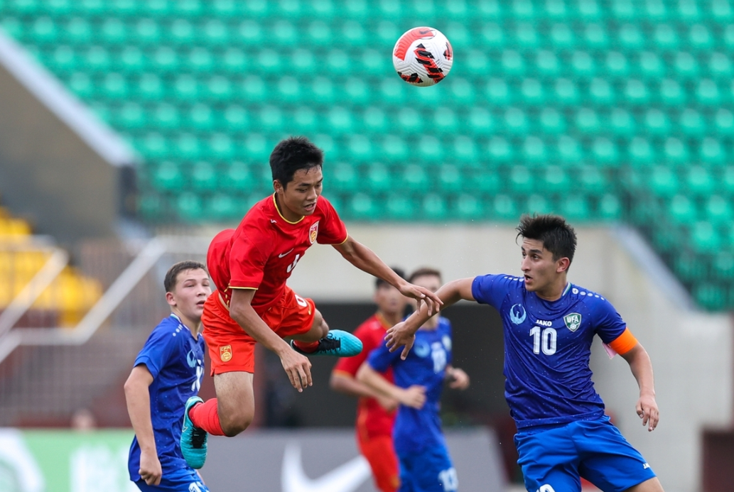 与乌兹别克斯坦U16的比赛,中国队踢433,首发阵容由布尼亚明、阿布都沙拉木、杨黔东、王一、刘佳乐、刘柄麟、赖健涛、温展霖、李启涛、艾力尼扎尔-罗合曼、江志钦、依合散-依拉木,首发11人平均年龄15.8岁。乌兹别克斯坦踢4231,阵容硬实力要比我们强一些。