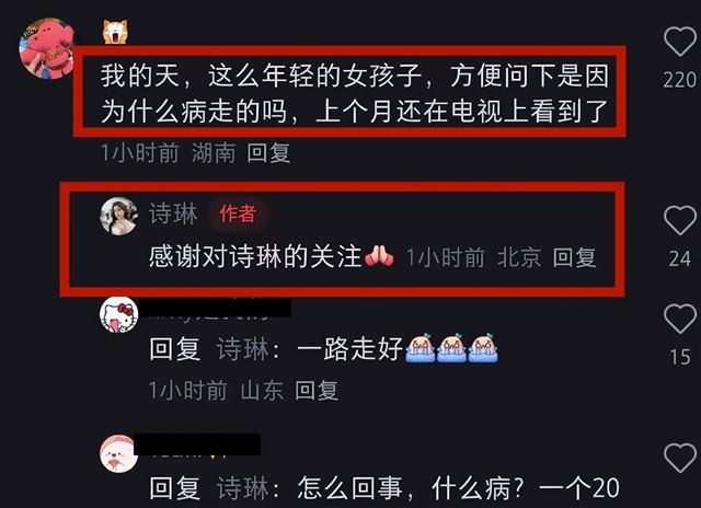 网友惋惜诗琳去世的消息传开后,众多网友纷纷表达了惋惜之情。