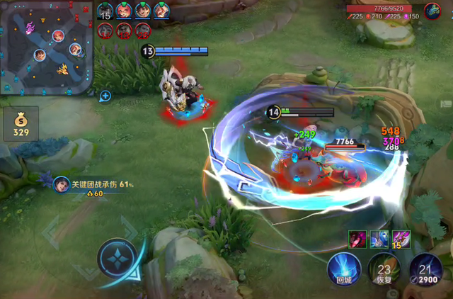 首先是打消耗,一套技能打多少算多少,之后撤出来,靠着短CD的技能特性伺机二次进场,这么做的目的,一个是压低敌方血量(因为曜的伤害是范围的,所以可以压多人血),另一个是干扰其对己方前排的输出,同时起到一定分割战场的作用。