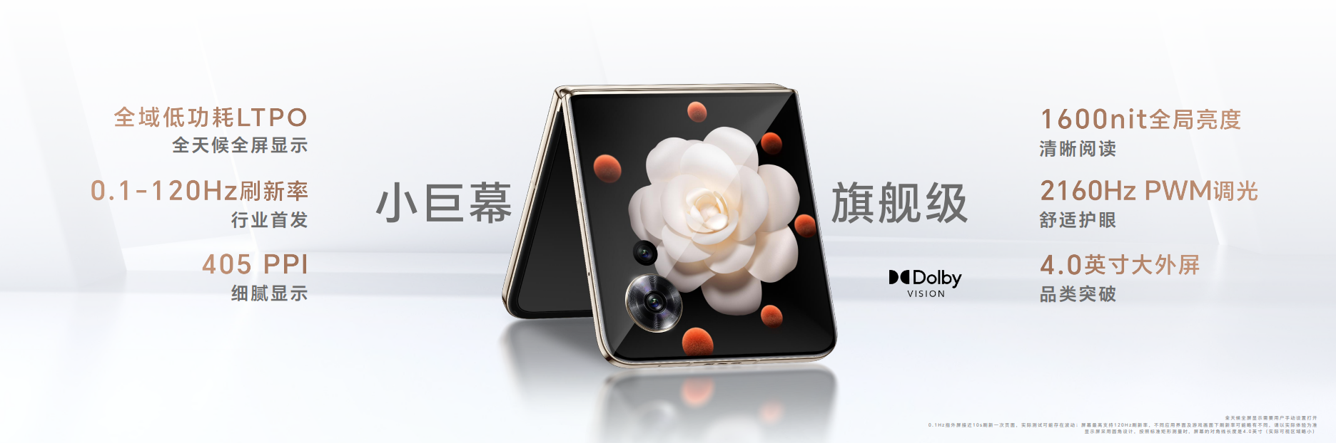 荣耀Magic V Flip不仅带来突破品类极限的4.0英寸大外屏,分辨率高达1200x1092,更创新采用左下角摄像头设计,避开高频使用区域,是一块闭合状态下更便于单手操作的“右手屏”。同时,这块外屏引入旗舰全域低功耗LTPO屏幕,兼具0.1Hz-120Hz高刷新率与低功耗全屏显示的领先优势。更有荣耀领先护眼技术加持,为用户提供用眼健康保障。