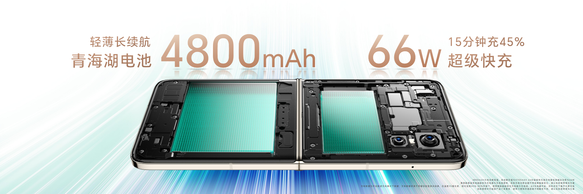 荣耀Magic V Flip拥有出色的旗舰性能,首次搭载旗舰青海湖电池,容量达到4800mAh,采用领先的硅碳负极电池技术,实现了高能量密度与轻薄机身的完美结合。同时,荣耀Magic V Flip支持66W超级快充,能够在短时间内迅速补充电量,彻底告别电量焦虑。