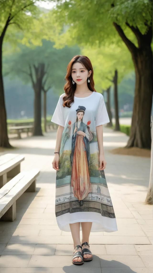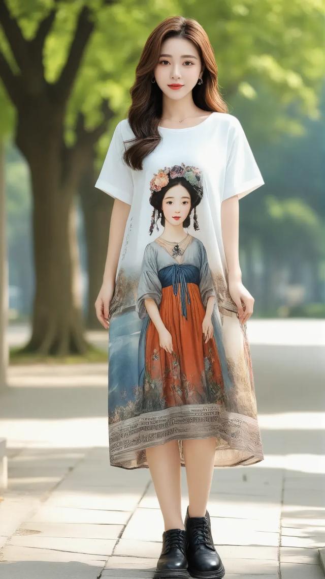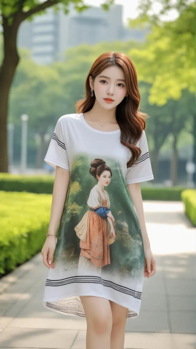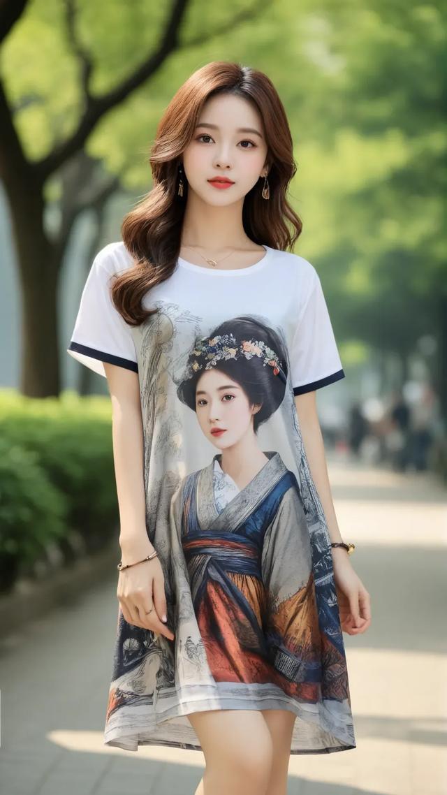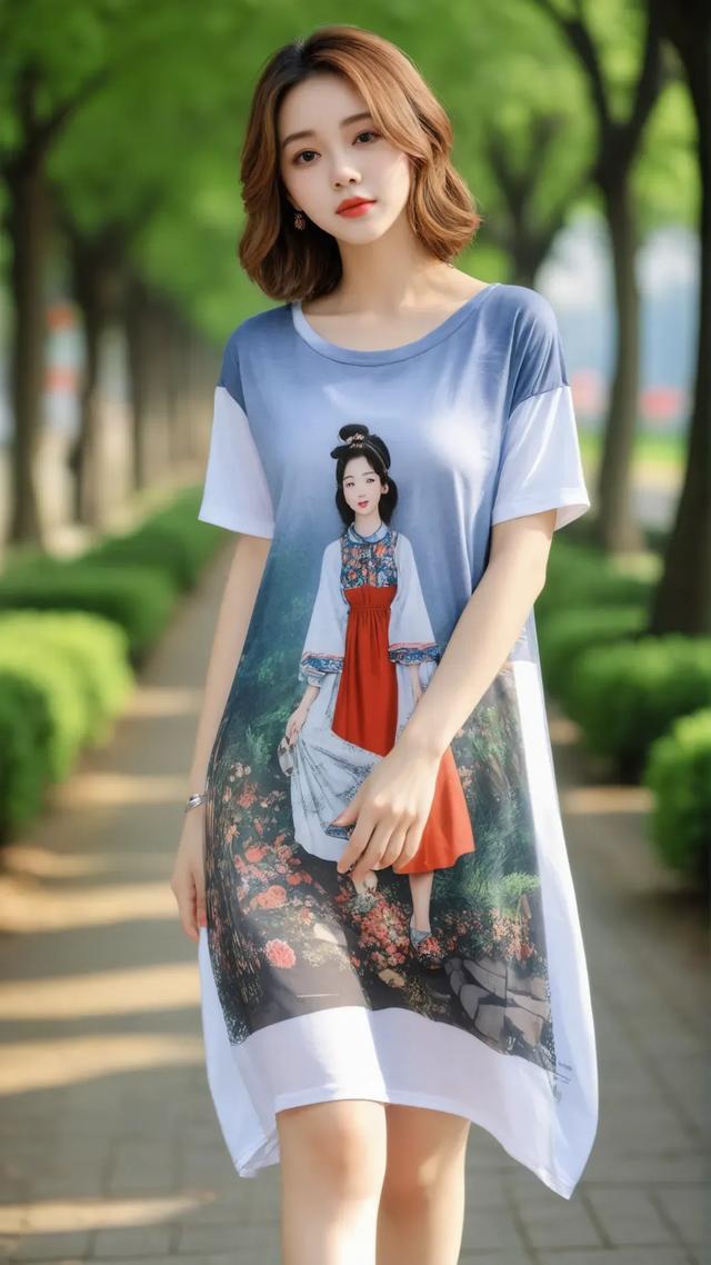 在追求个性化的今天,这款连衣裙无疑成为了展现自我风格与品味的绝佳选择。胸前的人物映像,不仅为穿着者增添了一份独特的时尚感,更让其在人群中脱颖而出,成为焦点所在。