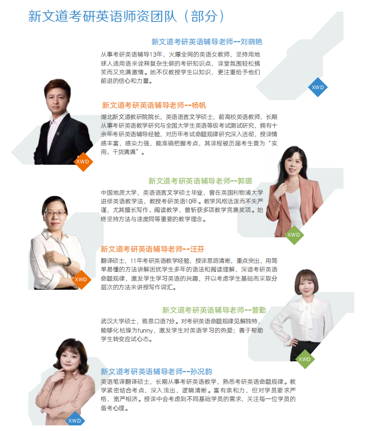 作为专注高等教育领域的教育集团,新文道致力于四六级、考研等赛道的深耕,充分发挥优质师资团队、成熟课程体系、完善教学服务的优势,多角度、全方位、立体化地为考研学子保驾护航,成就广大学子的梦想。