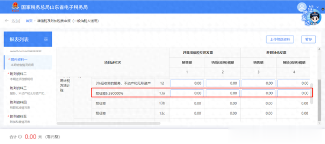 1、我单位是一般纳税人,在新电子税务局填写保存过增值税及附加税费申报(一般纳税人适用)表,又到主管税务机关重新维护了附列资料一13a行的预征率,再次登录新电子税务局,附列资料一13a行的预征率未显示新维护的预征率,怎么办呢?