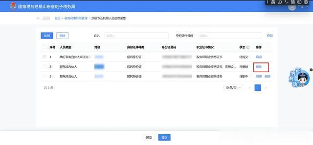 2、我单位是代理机构,以代理身份登录新电子税务局,“税务师事务所管理—涉税专业机构人员信息采集”模块下的股东信息是待删除状态,怎么操作才能修改为正常状态?