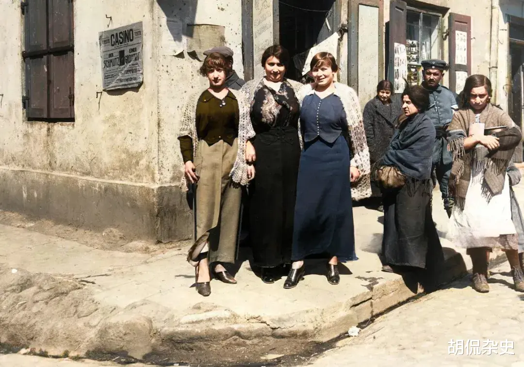 法国南锡市街头,一名法国女孩站在一枚380毫米的德国炮弹旁,1916年。