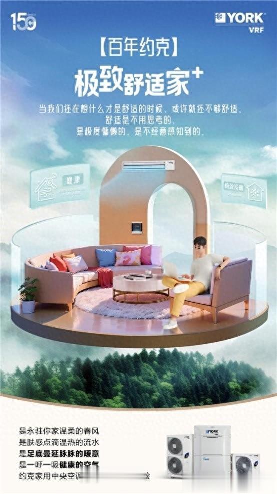 在这个快节奏的时代,我们内心都渴望用更纯净的呼吸体验找回一份回归自然的归属感。作为全球知名、拥有150年历史的美系高端品牌,约克VRF中央空调针对这一诉求给出了解决方案,那就是通过不断地科技创新和智造,洞察人们身体对每一方空气、每一次呼吸的细微感知,聆听心灵对大自然的真切向往,探寻未来人居空气的终极形态,将所有的舒适与美好都装进家中。