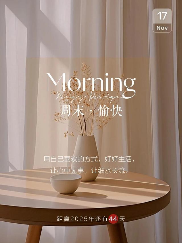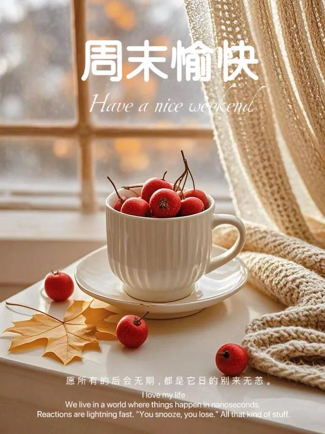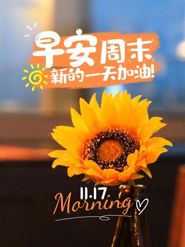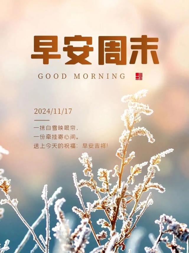 初冬之际,怀揣微笑与阳光,感受季节之美。即便日子平淡,亦要乐观奋进。愿吉星高照,福星相伴,时时欢笑。心怀美好,即使尘世喧嚣,内心总有净土。笑容开启好运之门,快乐迎接周末时光,问候传递心间祝福。早上好
