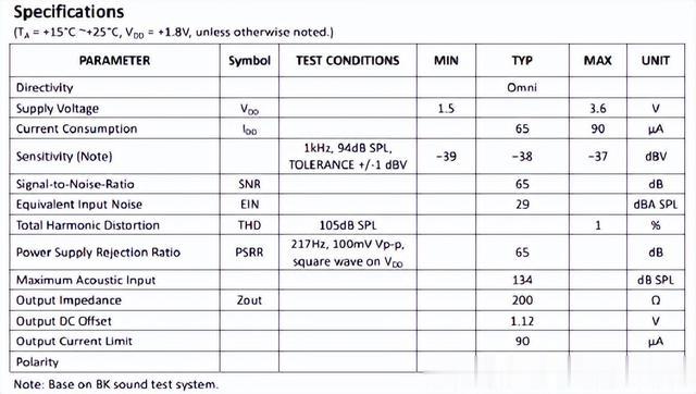 大多数 MEMS 麦克风具有相似的规格。以下是一些典型值。敏感性令人困惑,所以让我们先尝试处理它。