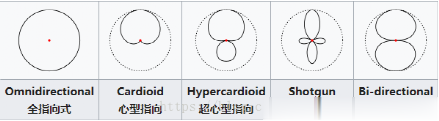 指向性也叫话筒的极性( polar pattern),它指话筒拾取来自不同方向的声音的能力。一般分全向型、心型、超心型、8字型。