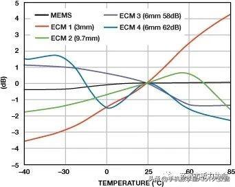 图6. 对振动的灵敏度与温度的关系:MEMS与ECM